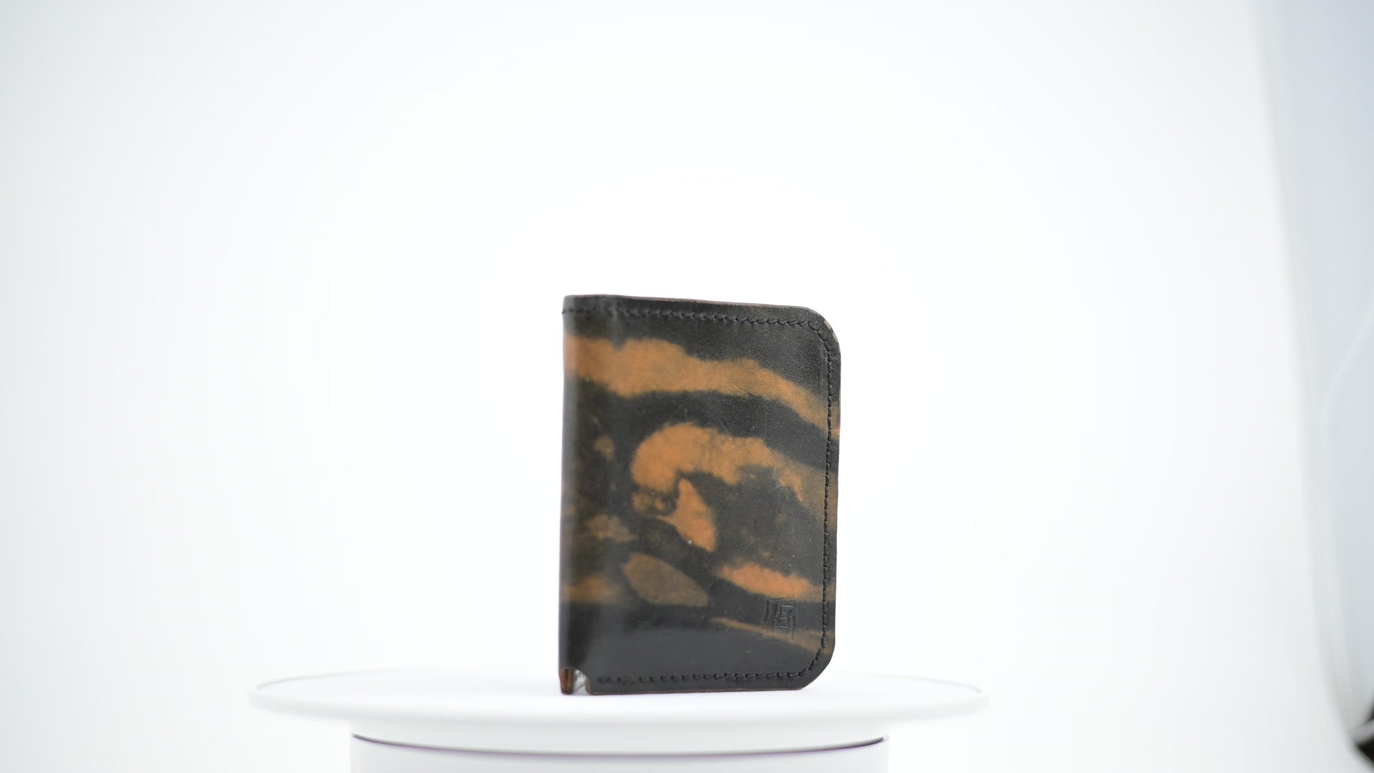Minimalist Bi-Fold Wallet - Marbled Black Leather