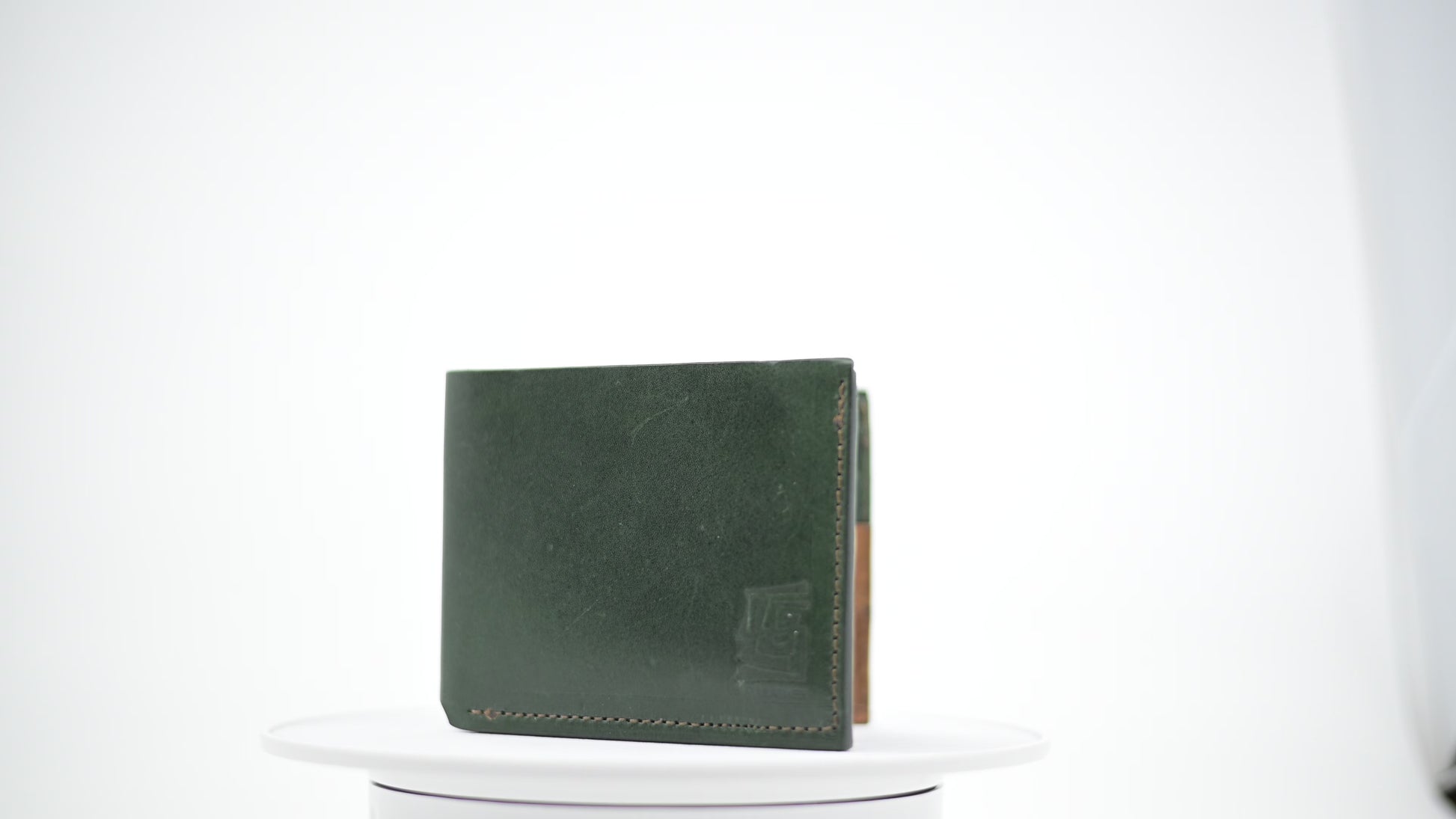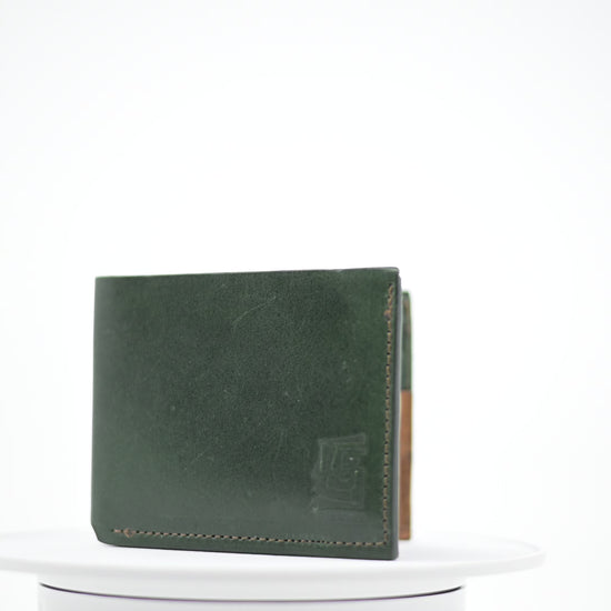 This traditional wallet mixes a forest green Italian leather and a luxurious cognac crocodile on two interior pockets, giving it a pop of color.